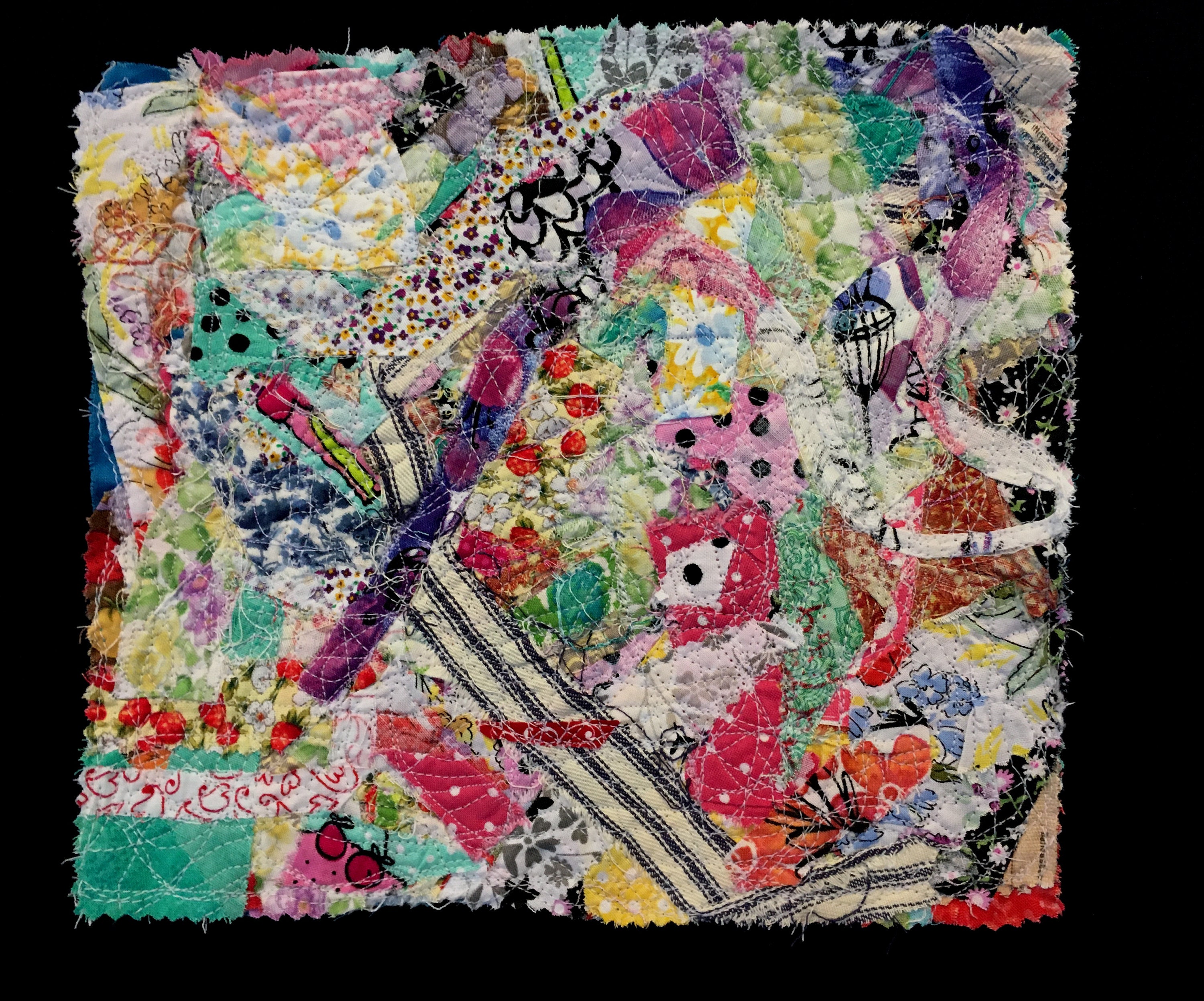 Abstract Fabric Scraps Textile Art Collage Wall Or Tabletop Etsy